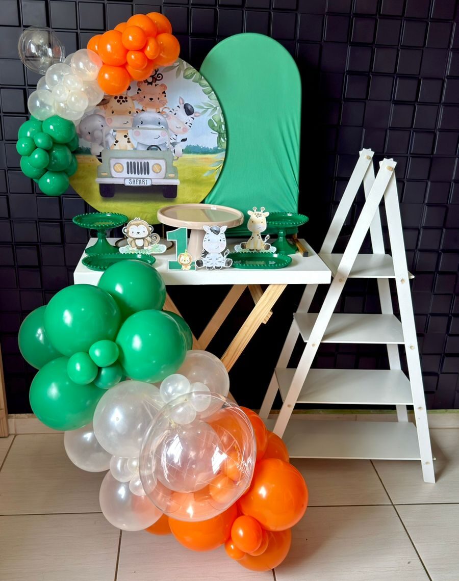 1 arco de balões frente mesa até 3 cores com bubble